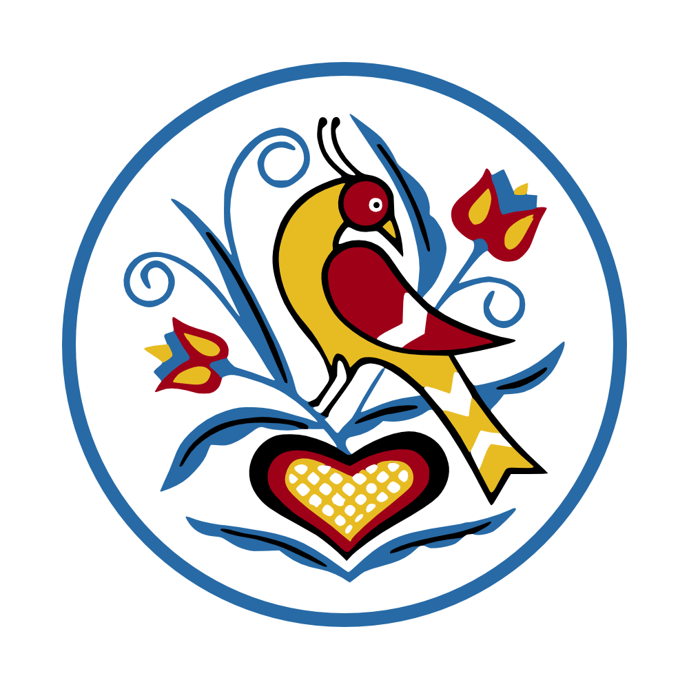 For our logo at Abblohwa Design, we use a uniquely colorized version of the single distelfink (a stylized goldfinch) hex sign. The distelfink itself signifies luck and happiness, while the heart represents love, and the tulips illustrate faith. Each color is meant to invoke additional sentiments: the blue represents peace, white for purity, yellow for health, red for passion, and black for unity and protection. We strive to incorporate each of these elements in our designs.